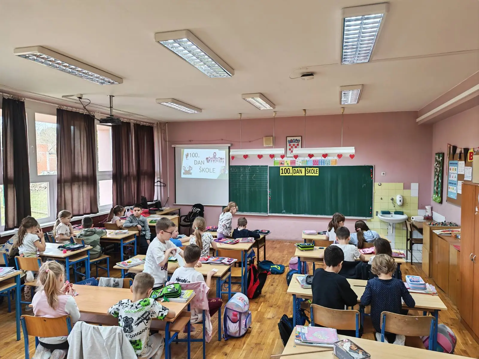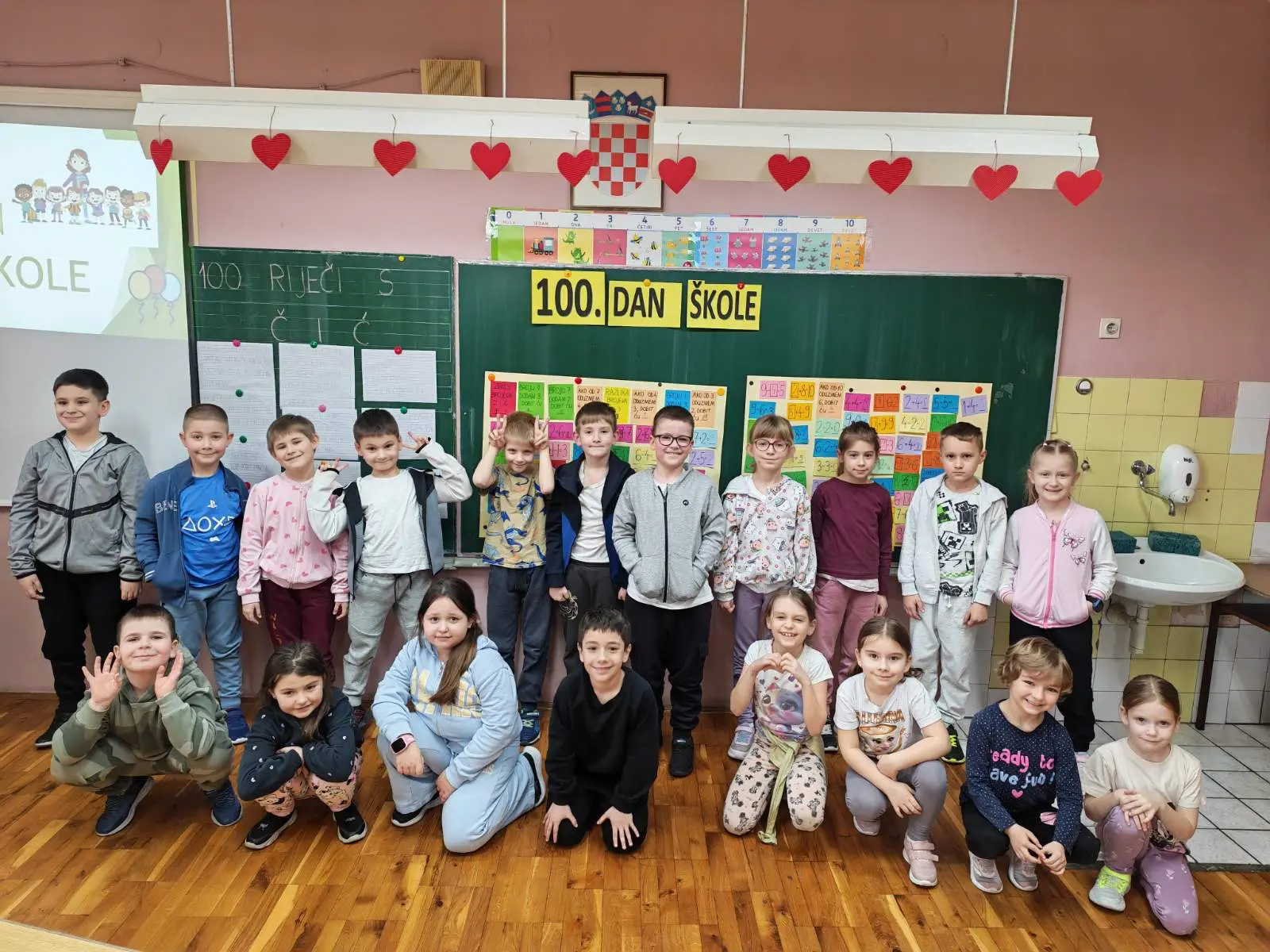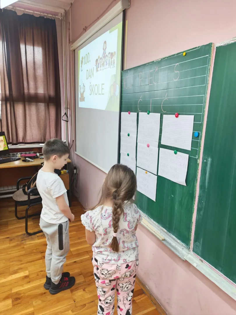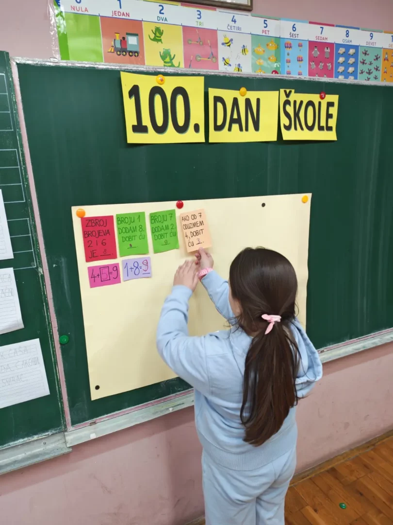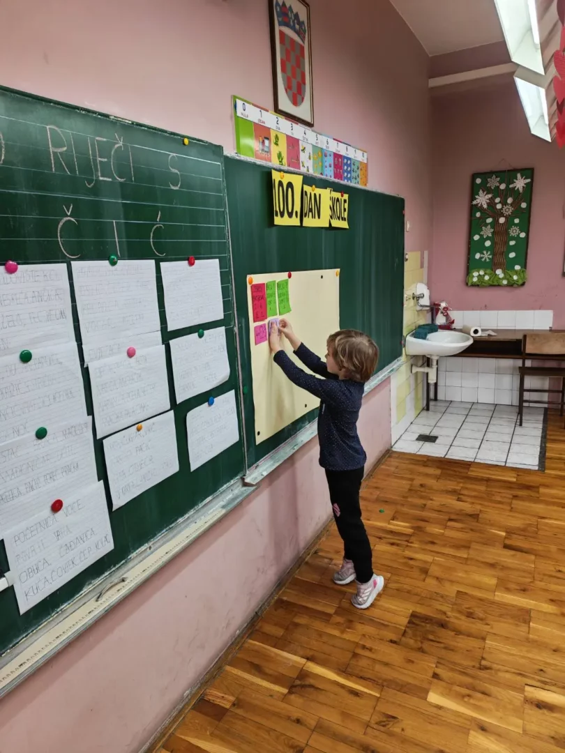 Danas su učenici 1.c razreda obilježili važan stoti dan u školi. 100. dan škole bio je pun aktivnosti i zabave! Prvo su se na satu tjelesne i zdravstvene kulture razgibali izvodeći 10 vježbi ponavljajući ih 10 puta. Poligon s 10 zadataka prošli su 10 puta. Na satu hrvatskog jezika učenici su vježbali čitati i pisati 100 riječi s glasovima č i ć. Bilo je zanimljivo upoznati i neke nove riječi. Matematika je bila izazovna te su učenici riješili 100 različitih zadataka zbrajanja i oduzimanja do 10. Bio je to radan i veseo dan u 1.c razredu!
