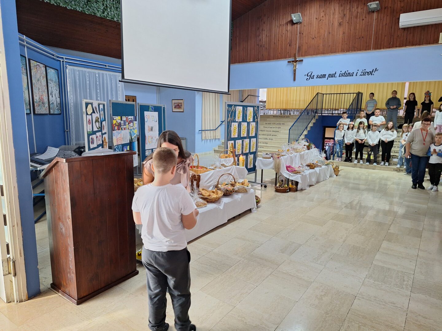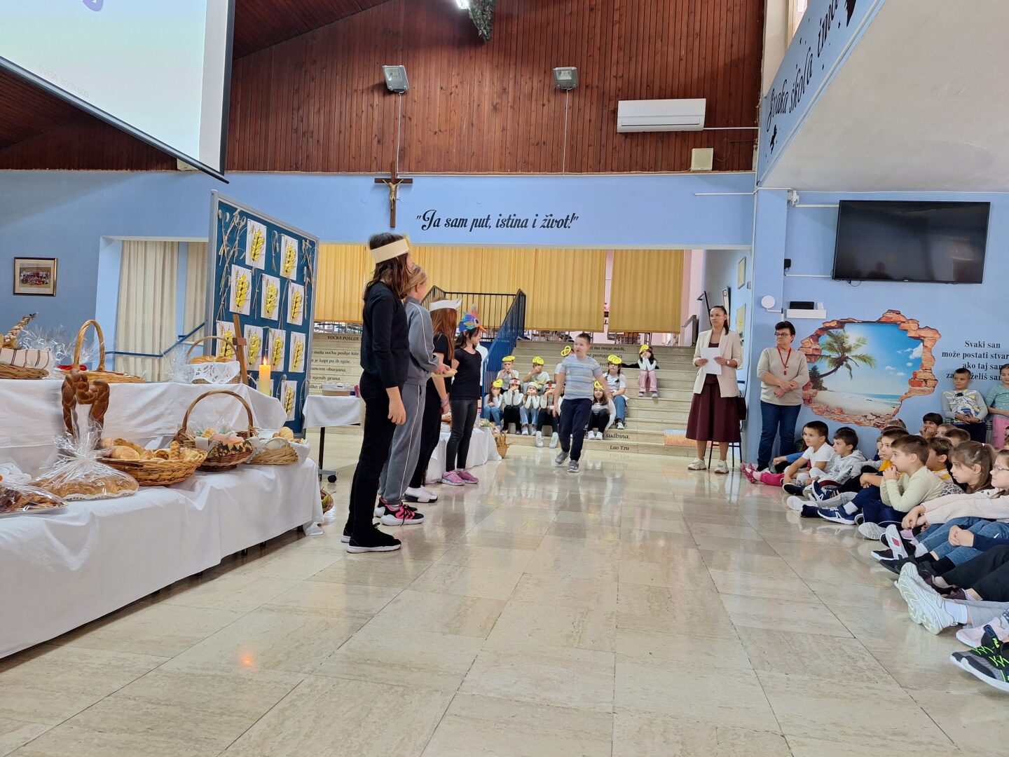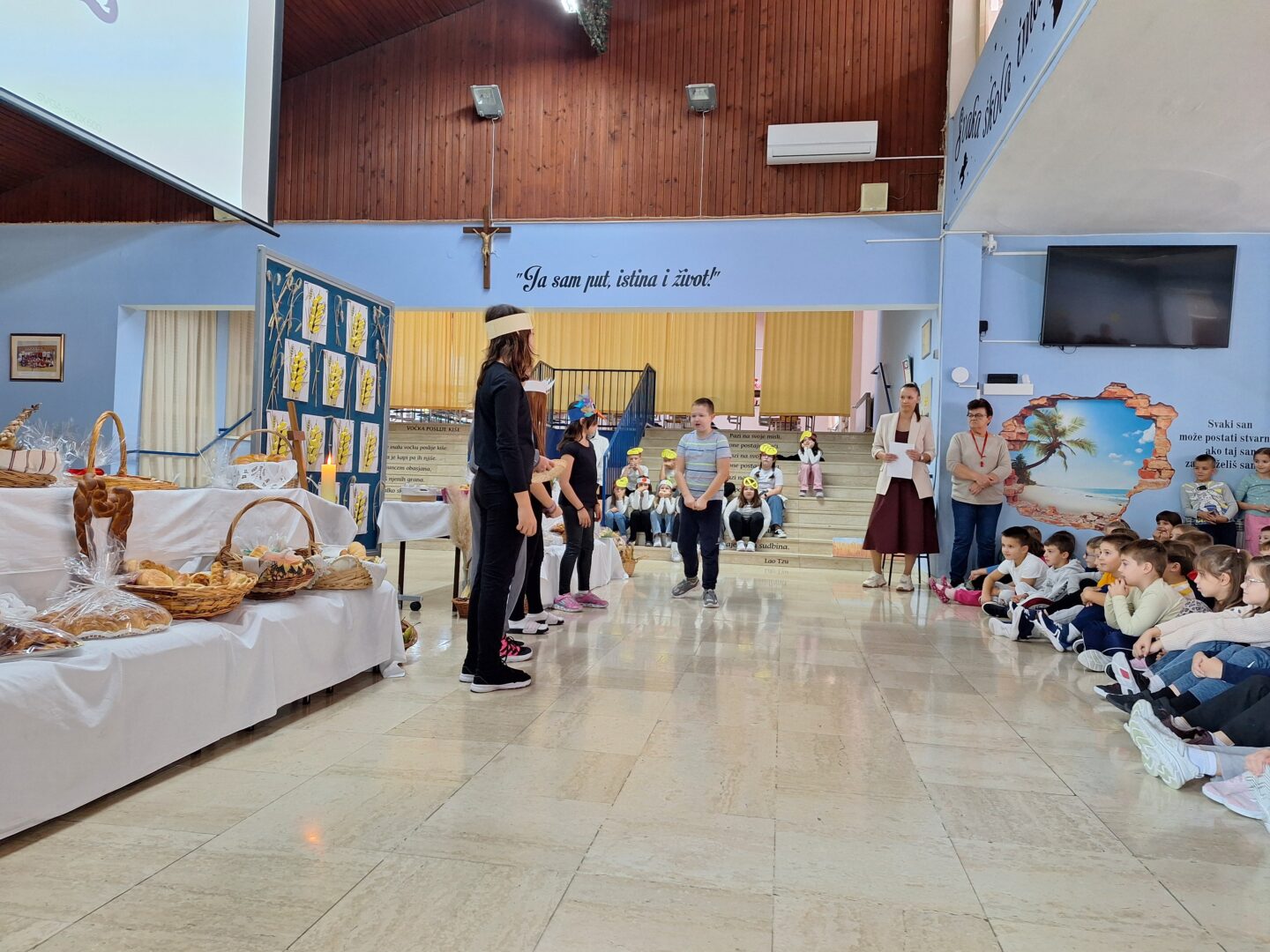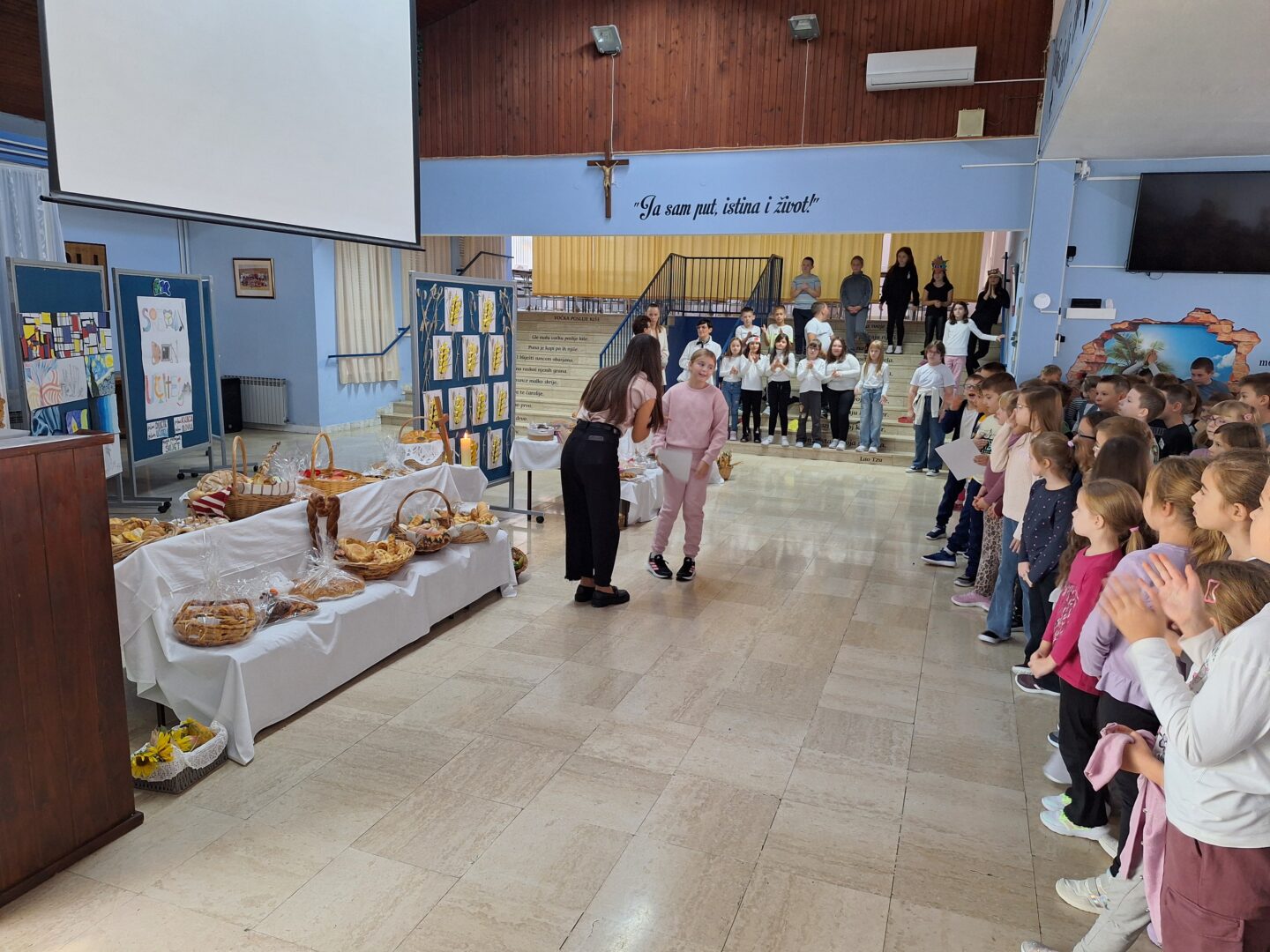 Poseban trenutak bio je kada je časna sestra Ana zajedno sa svim učenicima otpjevala pjesmu zahvale, stvarajući radosno i dirljivo ozračje. Na kraju svečanosti, župnik je posvetio izložene pekarske proizvode, nakon čega su svi zajedno uživali u blagovanju i druženju.
