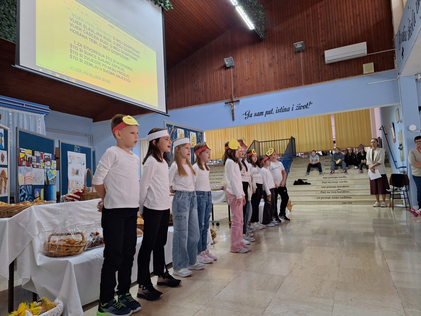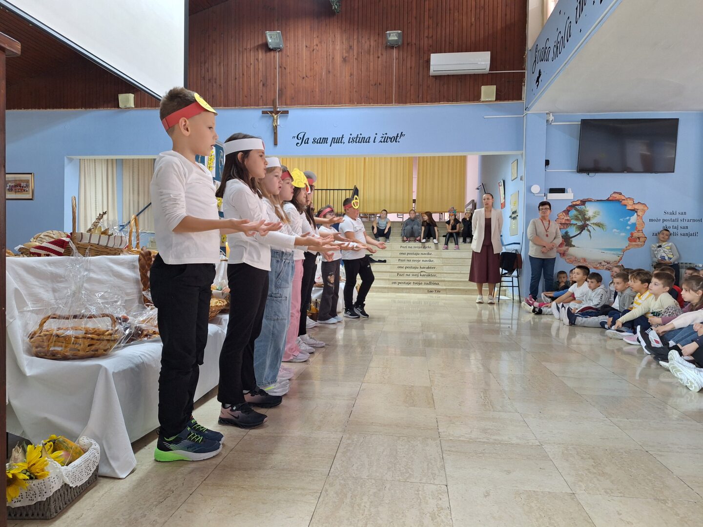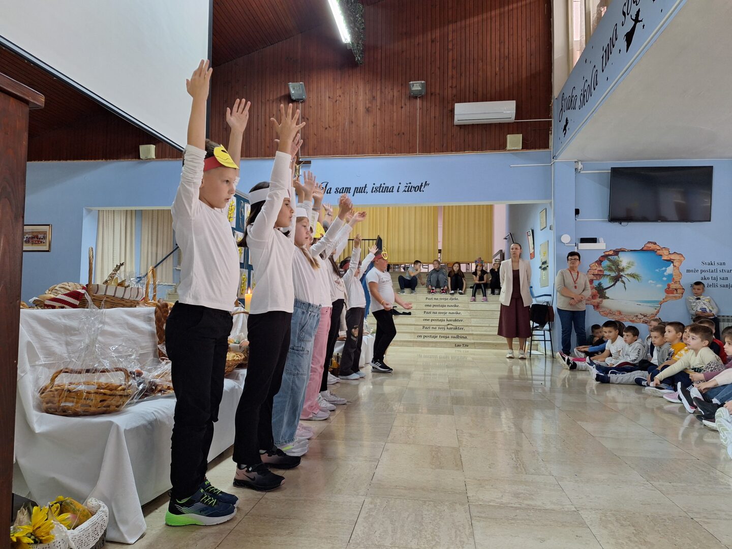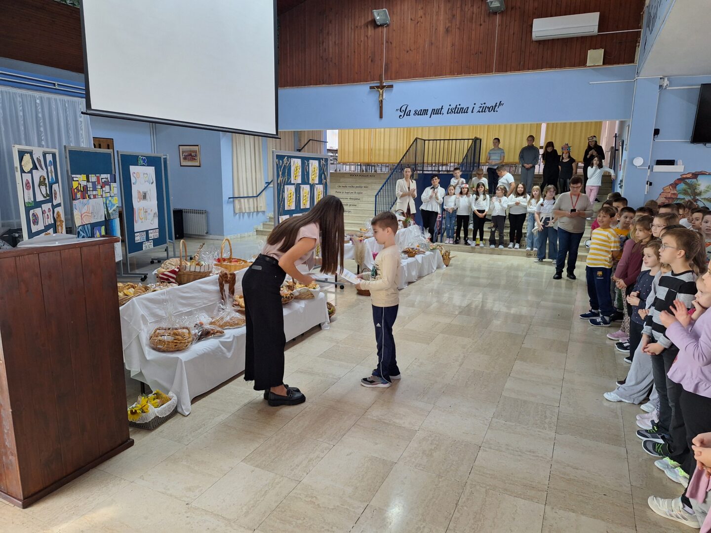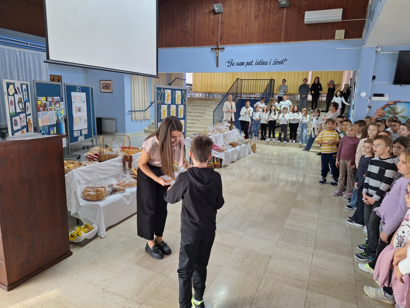 Poseban trenutak bio je kada je časna sestra Ana zajedno sa svim učenicima otpjevala pjesmu zahvale, stvarajući radosno i dirljivo ozračje. Na kraju svečanosti, župnik je posvetio izložene pekarske proizvode, nakon čega su svi zajedno uživali u blagovanju i druženju.