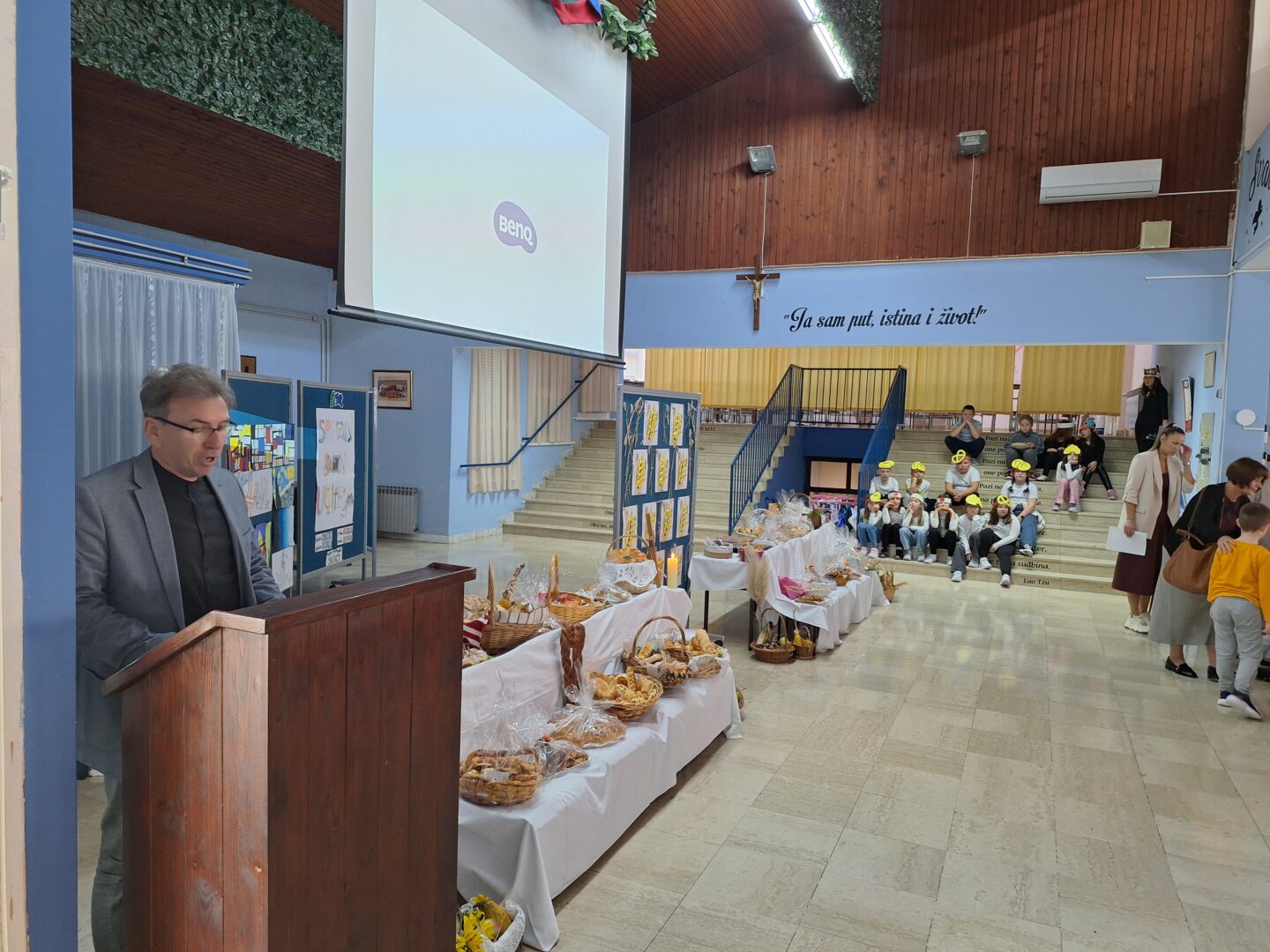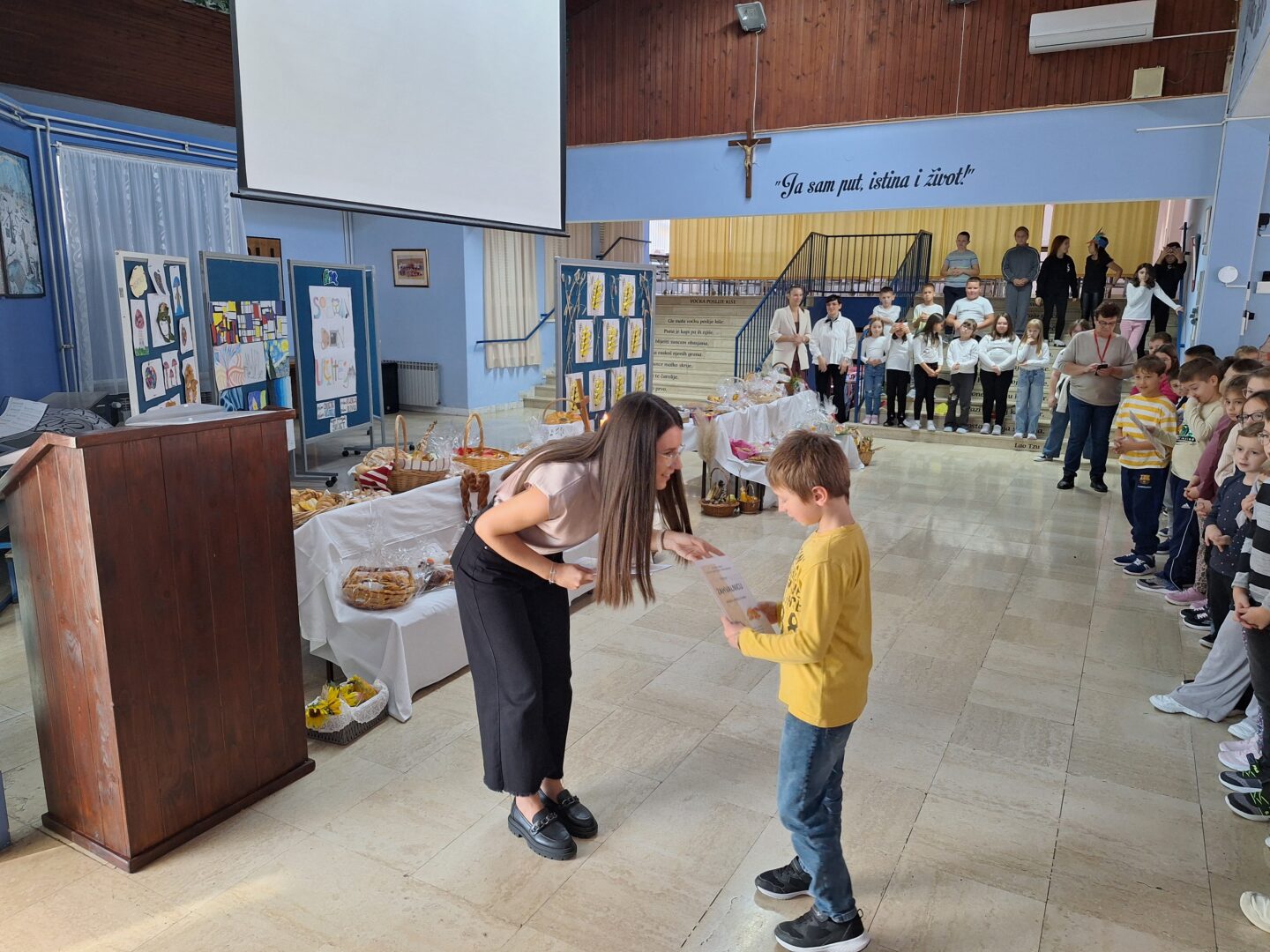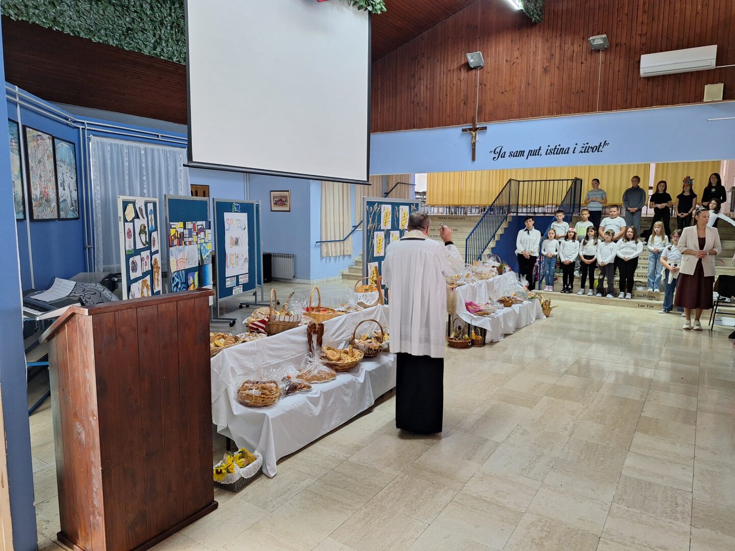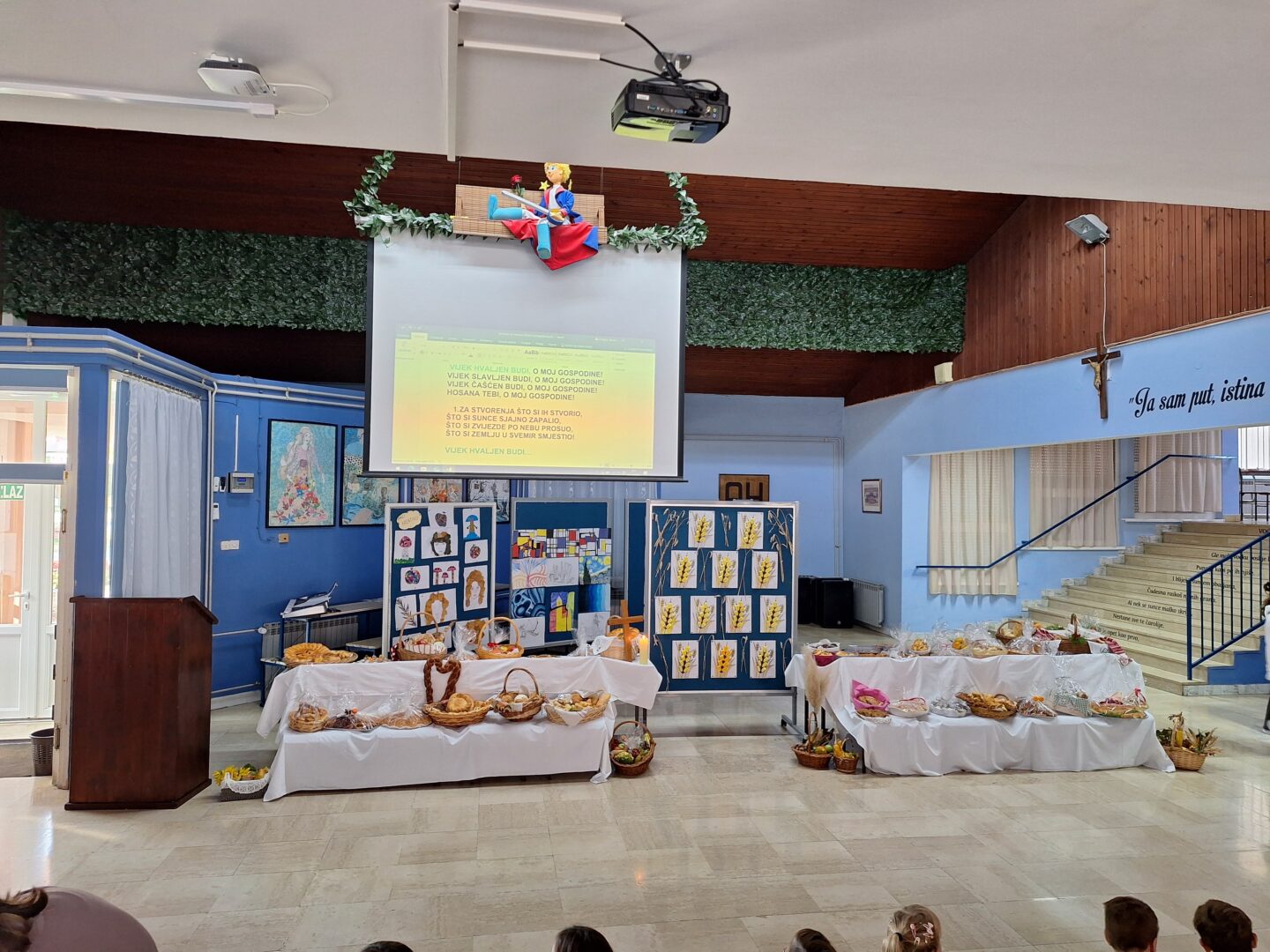 Poseban trenutak bio je kada je časna sestra Ana zajedno sa svim učenicima otpjevala pjesmu zahvale, stvarajući radosno i dirljivo ozračje. Na kraju svečanosti, župnik je posvetio izložene pekarske proizvode, nakon čega su svi zajedno uživali u blagovanju i druženju.
