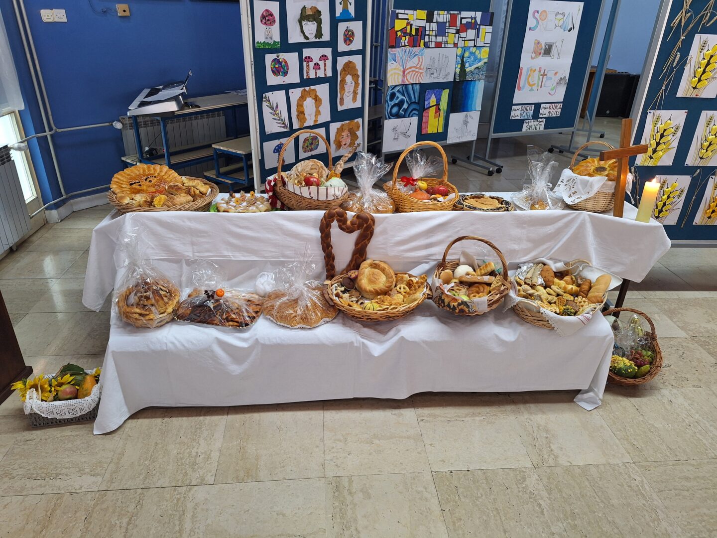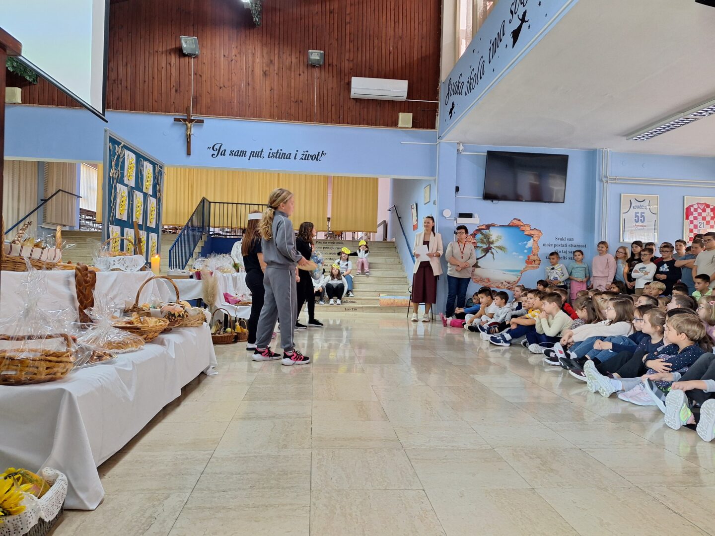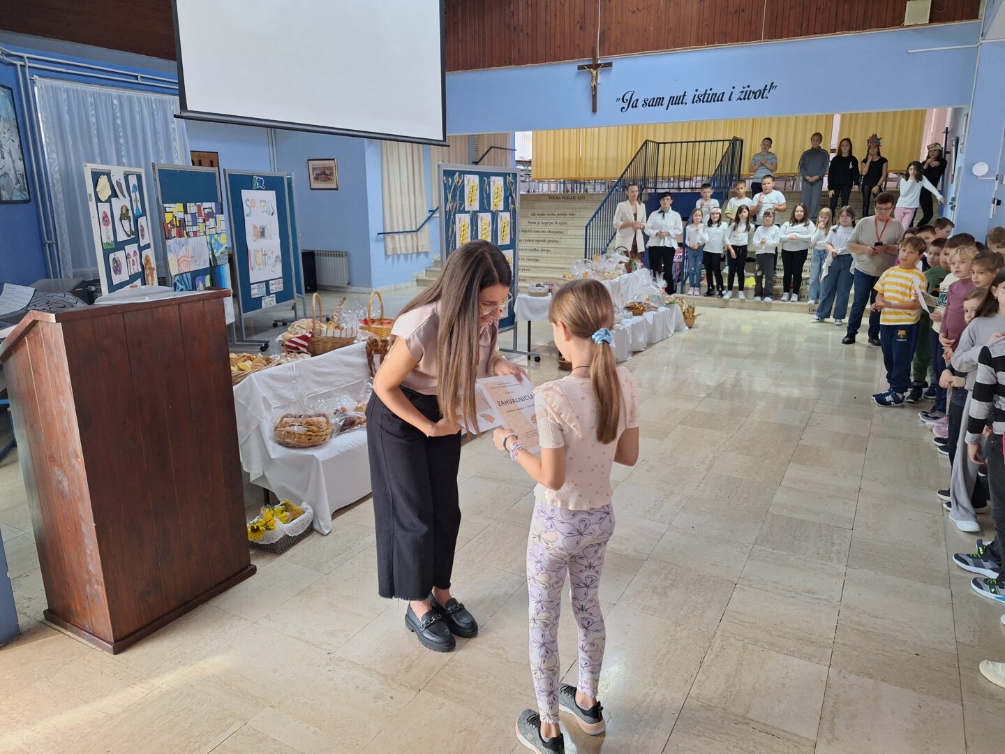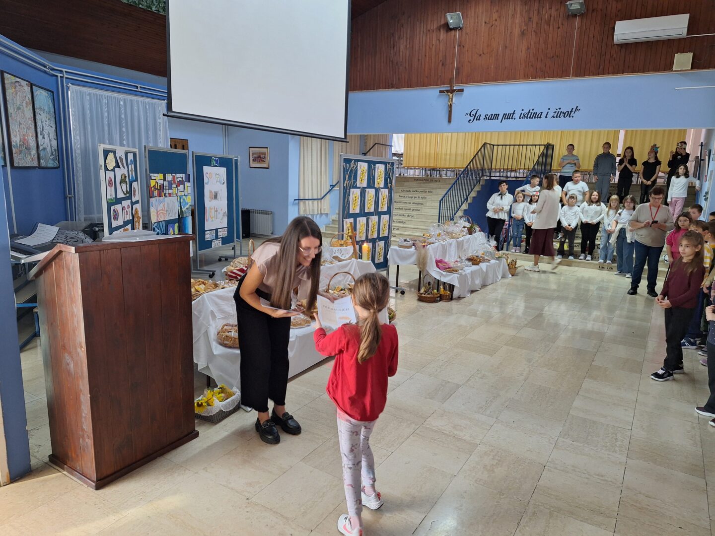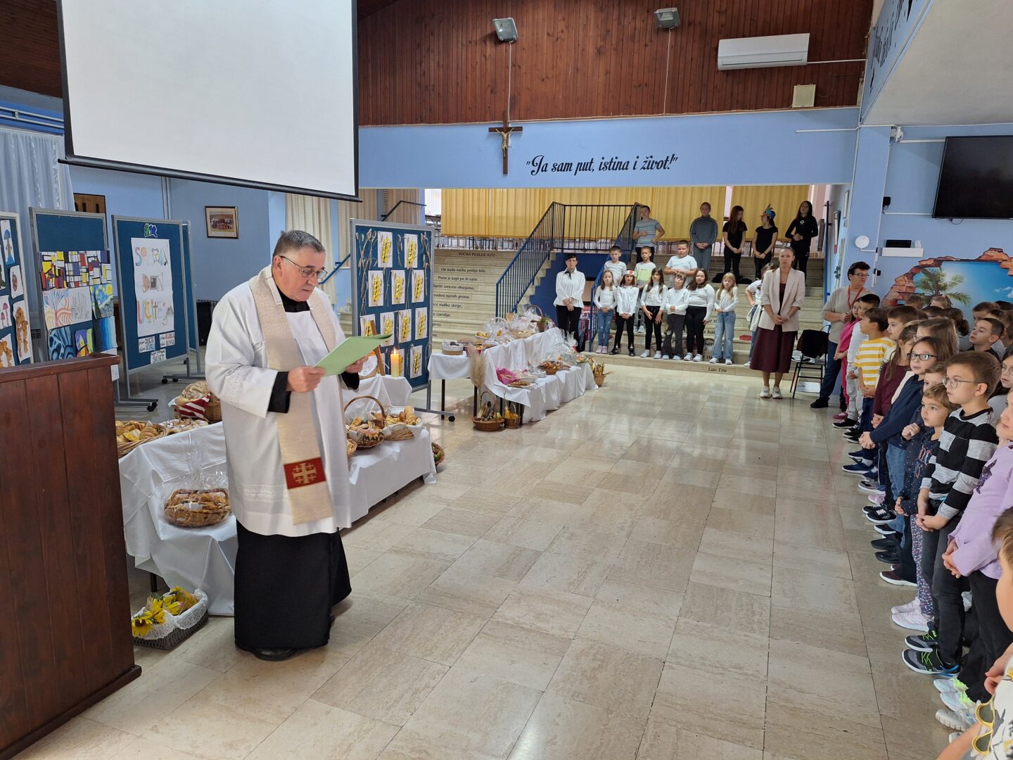Poseban trenutak bio je kada je časna sestra Ana zajedno sa svim učenicima otpjevala pjesmu zahvale, stvarajući radosno i dirljivo ozračje. Na kraju svečanosti, župnik je posvetio izložene pekarske proizvode, nakon čega su svi zajedno uživali u blagovanju i druženju.