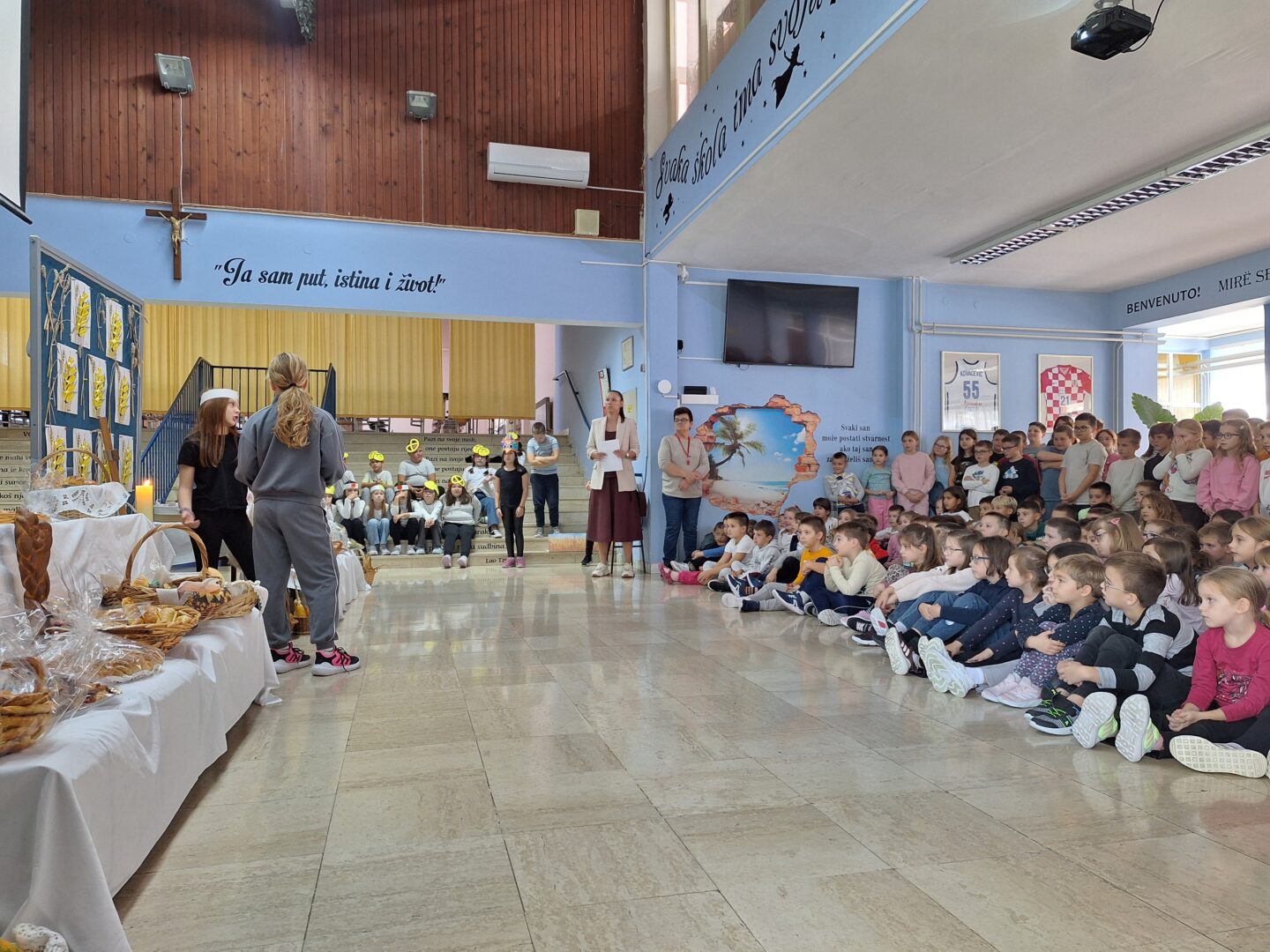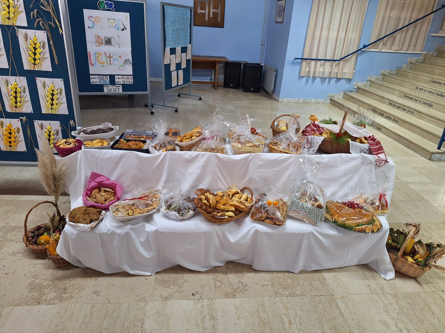 U našoj je školi svečano obilježen Dan kruha i zahvalnosti za plodove zemlje. Učenici su s radošću od kuće donijeli razne pekarske proizvode koje su pripremali zajedno sa svojim mamama i bakama. Stolovi su bili puni mirisnih kruhova, peciva, kolača i drugih slastica koje su pokazale koliko truda i ljubavi može stati u svaki zalogaj.