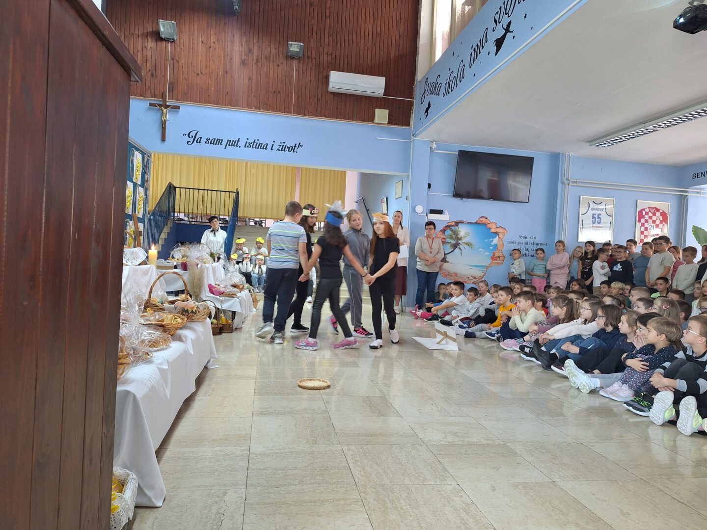 Svečanost je započela uvodnim govorom ravnatelja, koji je istaknuo važnost zajedništva, zahvalnosti i očuvanja tradicije. Učiteljice koje vode Kreativnu skupinu uredile su prekrasan pano s jesenskim motivima te izradile kostime malih glumaca, a učiteljice Malog zbora i Male dramske skupine pripremile su prigodan program kojim su učenici razveselili sve prisutne.