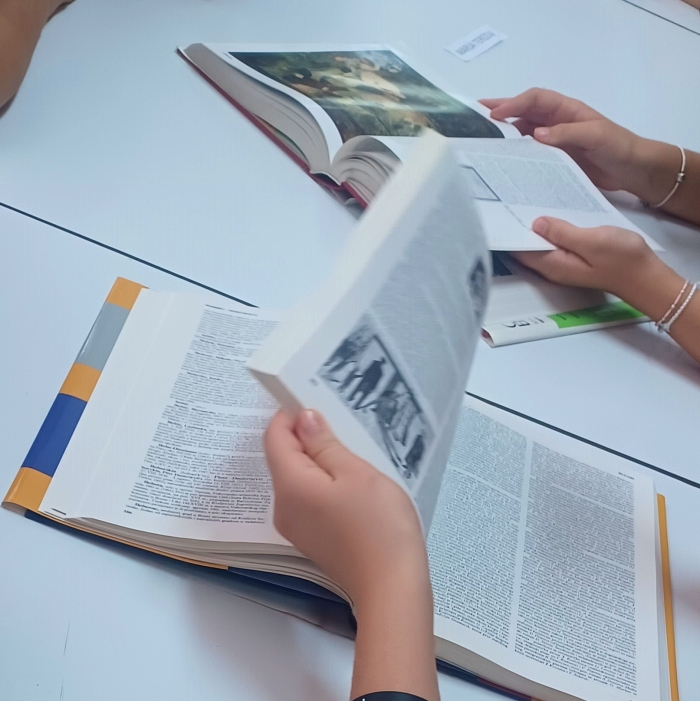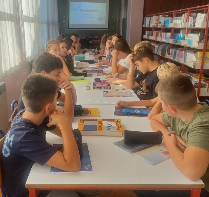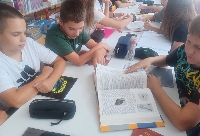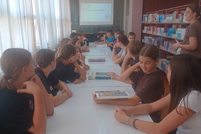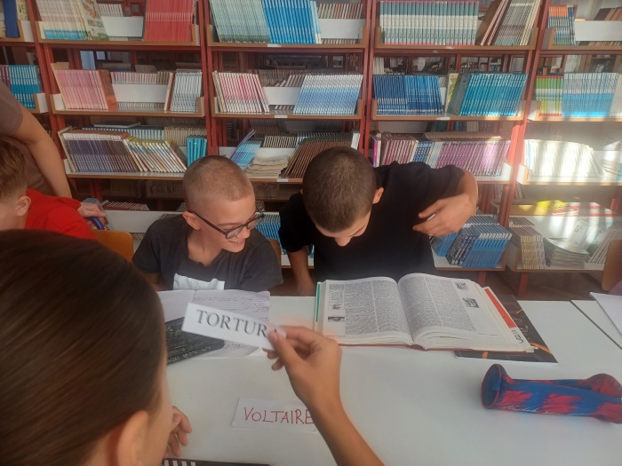 U nastojanju da teorijsko gradivo učini zanimljivijim i poveže ga sa sadašnjim vremenom, učiteljica povijesti J. Šarčević u rujnu je dovela učenike sedmih razreda u školsku knjižnicu gdje su se uz pomoć knjižničarke A. Hat upoznali s radom francuskih enciklopedista.